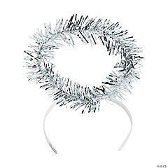6" Silver Tinsel Angel Halos Plastic Headbands - 12 Pc.