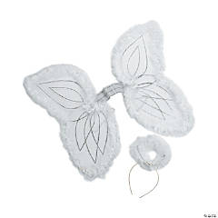Kids White Marabou Angel Wings & Halo Headband - 2 Pc.