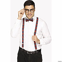 Adults Nerd Black & Plaid Suspender Set Costume Accessories