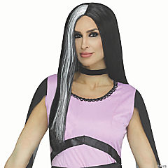 Adults Black with White Streak Monster Mom Wig Costume Accessory