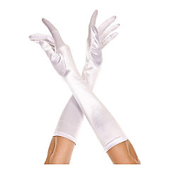 Music Legs 452-WHITE Extra Long Satin Gloves - White
