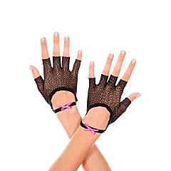 Music Legs 477-BLACK-PINK Fishnet Fingerless Gloves with Satin Bow Wrist Band - Black & Pink