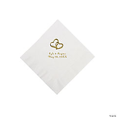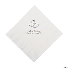 Bulk 50 Ct. Personalized White Two Hearts Luncheon Napkins with Silver Foil