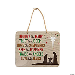 Oh Come Let Us Adore Him Wood Christmas Tree Ornaments - 12 Pc.