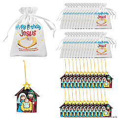 Personalized Happy Birthday Jesus Bag with Christmas Ornament Handout Kit for 24