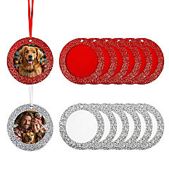 Wrapables Christmas Holiday Glittery Felt Photo Frame Ornaments (Set of 12), Red and Silver Circle