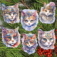 Christmas Cats Wooden Decorative Clip-On Ornaments Set Of 6 By G.Debrekht