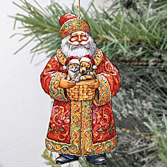 Set of 2 - Yuletide Pets with Santa Wooden Christmas Ornaments by G. Debrekht