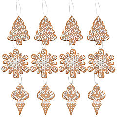 Gingerbread Cookie Christmas Ornaments 12pc Cookie-Shaped Set, 4.5" Large Size Tree Decor