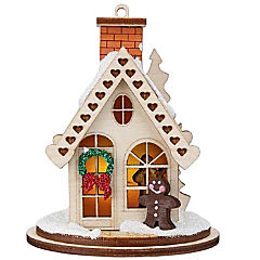 Set of 2 - Santa and the Gingerbread House Wooden Christmas Ornaments by G. Debrekht