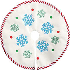 Vickerman Grey and White Embroidered Snowflakes 60" Cotton Christmas Tree Skirt