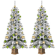 Costway Set of 2 24in Battery Powered Pre-lit Pathway Flocked Christmas Trees Outdoor