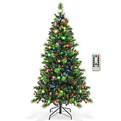 Costway 4.5Ft Pre-lit Hinged Christmas Tree w/ Pine Cones Red Berries and 300 LED Lights