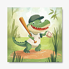 Carter the Curveball Crocodile Gallery Wrapped Canvas by Dancing Littles Jungle - Size 18x24 Inch