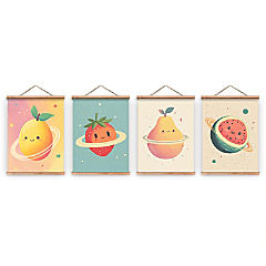 Planet Picnic Set of 4 Magnetic Wood Frame Hanger by Dancing Littles Jungle - Size 17.5x24 Inch