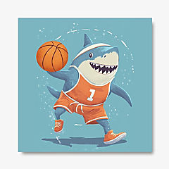 Jaws the Ballin Shark Gallery Wrapped Canvas by Dancing Littles Jungle - Size 18x24 Inch