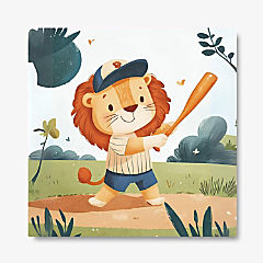 Lance the Lionheart Slugger Gallery Wrapped Canvas by Dancing Littles Jungle - Size 18x24 Inch