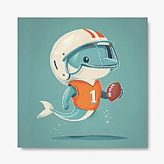 Dex the Touchdown Dolphin Gallery Wrapped Canvas by Dancing Littles Jungle - Size 18x24 Inch
