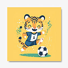 Tim the Scoring Tiger White Framed Canvas by Dancing Littles Jungle - Size 16x24 Inch