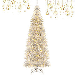 Costway 6 FT Pre-Lit Slim Christmas Tree Flocked Xmas Decoration 11 Modes 250 LED Lights