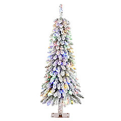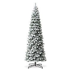Glitzhome 7.5ft Pre-Lit Flocked Pencil Pine Artificial Christmas Tree with 350 Warm White Lights, 3 function