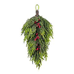 Glitzhome 31.5"H Christmas Greenery PE Dripping Teardrop with Pinecones and Red Berries