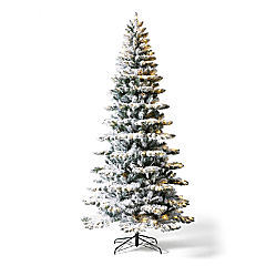 Glitzhome 9ft Pre-Lit Snow Flocked Full-size Fir Artificial Christmas Tree with 650 Warm White Lights, 3 function,Simply Setup