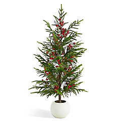Glitzhome 37.5"H Christmas Greenery PE Dripping Pine Porch Tree with Pinecones and Red Berries