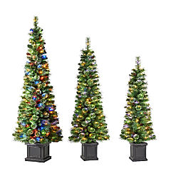 Glitzhome Set of 3 5ft/6ft/7ft Green Cashmere Pine Christmas Porch Tree With pinecones,90/130/200 Warm White/Multi-color Lights,9 Function w/Remote control