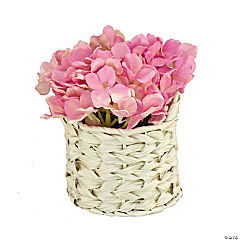 National Tree Company 10" Pink Hydrangea Bouquet In White Basket