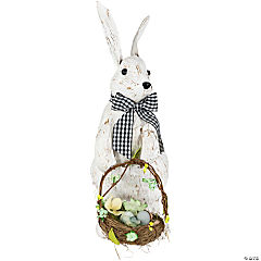 Rustic Rabbit with Easter Basket Standing Figure - 14" - Brushed White