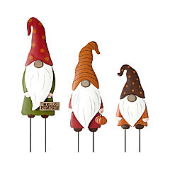 Glitzhome Set of 3 Fall Metal Gnome Family Yard Stake or Wall Décor or Standing Decor(KD, Three Function)