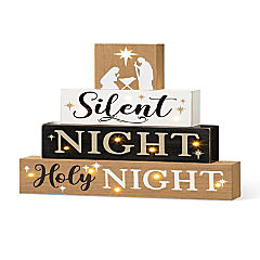Glitzhome 12"H Lighted Wooden Nativity Block Word Sign