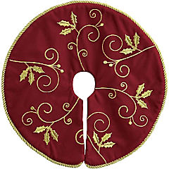 Old World Christmas Mini Ornate Tree Skirt with Gold Leaves, Red