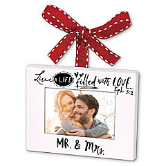 Edge Collections - 3.75" x 4" - White - Elegant Photo Frame Ornament for Mr and Mrs!