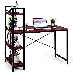 Costway 47.5'' Compact Computer Desk With 4-Tier Storage Bookshelves for Home Office Brown