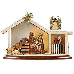 Glitzhome 12.5"L Lighted Resin Nativity House
