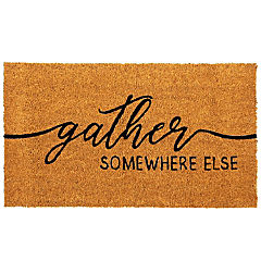Fall Welcome Mat for Front Porch, Outdoor Thanksgiving Door Mat, Gather Somewhere Else, 17 x 30 In