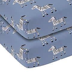 Lambs & Ivy Signature Zebra Blue Organic Cotton 2-Pack Fitted Crib Sheets