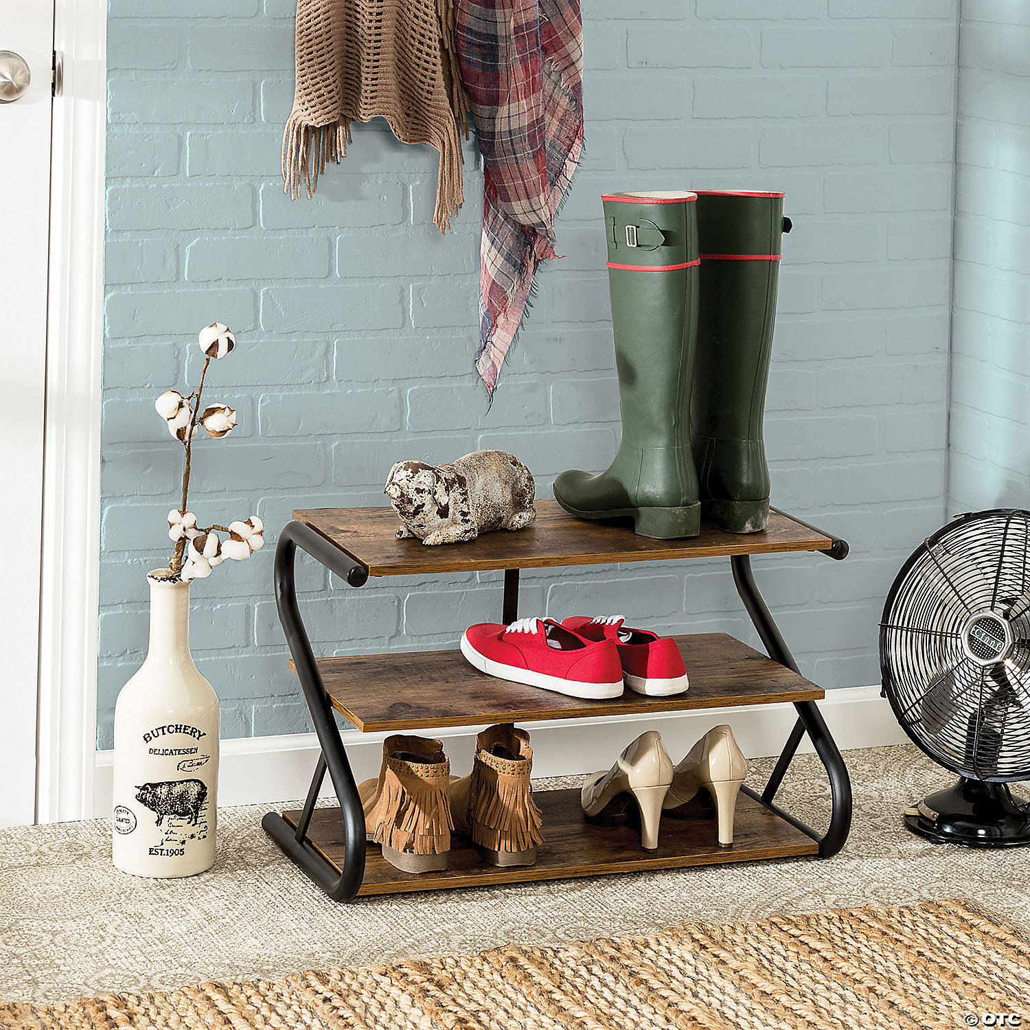 Currently, if you have shoes splashed across a doorway, kicked into a mudroom, or abandoned into the far reaches of a closet, then you’re in for a big treat. Because this stylish 3-tier wooden shoe rack is a huge upgrade. The matte black steel frame is forged into a Z shape for a sleek modern profile. And the three wood shelves are lightly stained to showcase the wood’s natural grain. At an entryway or in a bedroom, this shoe rack makes a statement without being too conspicuous, no matter the current state of your shoe storage. Special Shipping Information: This item ships separately from other items in your order. This item cannot ship to a P.O. Box. This item may be subject to additional processing days. Item is not eligible for expedited shipping. You may initiate a return for unused items within 30 days, if the items are in original packaging with all original materials included with the shipment.