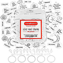 Incraftables 60pcs Silver Word Charms 15pcs Clasps & Rings. Motivational, Inspirational Silver Charms for DIY Craft, Bangle & Jewelry Making
