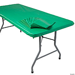6 ft. Bulk 12 Pc. Green Fitted Rectangle Disposable Plastic Tablecloths