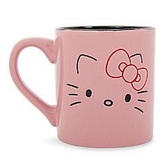 Sanrio Hello Kitty Pink Outline Face Wax Resist Ceramic Mug Holds 14 Ounces