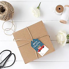 Red Christmas Car with Tree To/From Tags