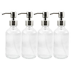 8-Ounce Clear Glass Boston Round Bottles w/ Stainless Steel Lotion Pumps (4-Pack); Empty Refillable Liquid Soap & Lotion Bottles
