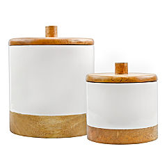 Enamel/Mango Wood Canister Set, 2pc; Farmhouse Rustic Minimalist Japandi Kitchen