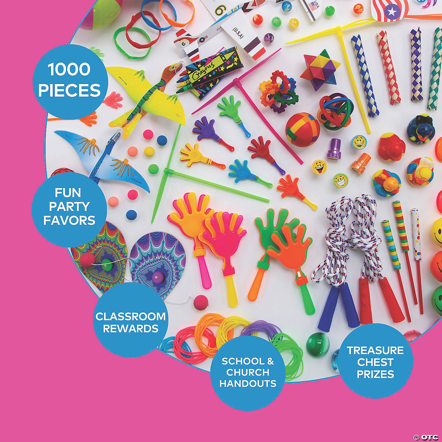 This huge assortment of kids' toys is perfect for every occasion! Searching for unique and fun birthday party favors? Add these assorted toys to your treat bags as goodies that will be a huge hit with little partygoers. Also great Easter basket gifts and Christmas stocking stuffers, you'll have plenty to go around. Hand them out as safe alternatives to sugary Halloween candy and trick-or-treaters love them. Fill a bowl with them at family functions to keep little ones busy and entertained while the adults relax. With an assortment this big, you'll have plenty of toys for every event! (1008 pcs. per unit) Sizes and materials vary. © OTC