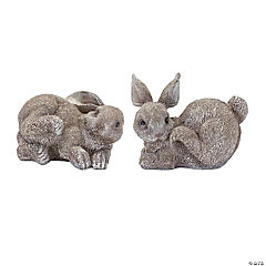 Distressed Garden Rabbit Statue (Set Of 2) 12.25"L X 7.5"H, 7.5"L X 12.5"H Resin