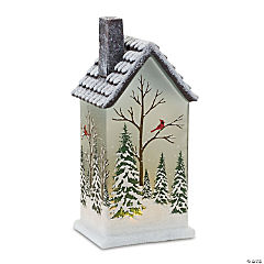 Led Lighted House With Pine Trees (Set Of 2) 9"H Glass 2 Aaa Batteries, Not Included
