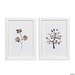 Tree And Floral Wall Art (Set Of 2) 10.25"L X 14.25"H Mdf/Glass